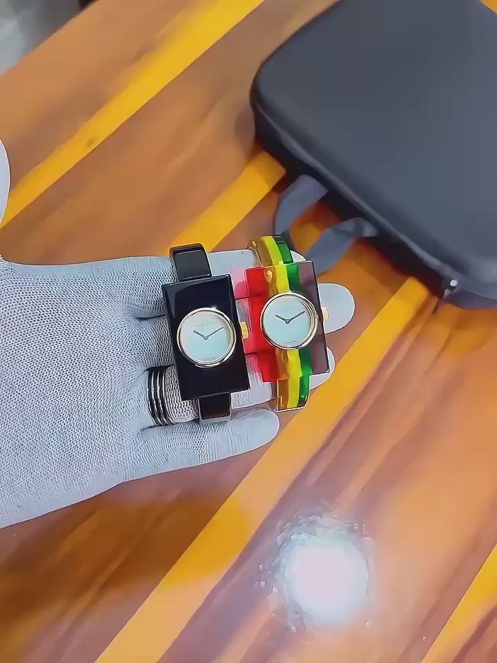 A striking timepiece designed with a unique rectangular silhouette and confident gold-tone detailing, created for those who love standout fashion with luxury appeal.